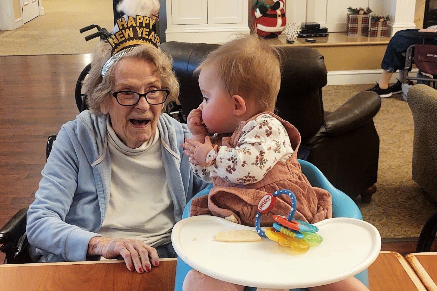 OWHC residents celebrated New Years Eve in style with party food and drink, a special little visitor and music.