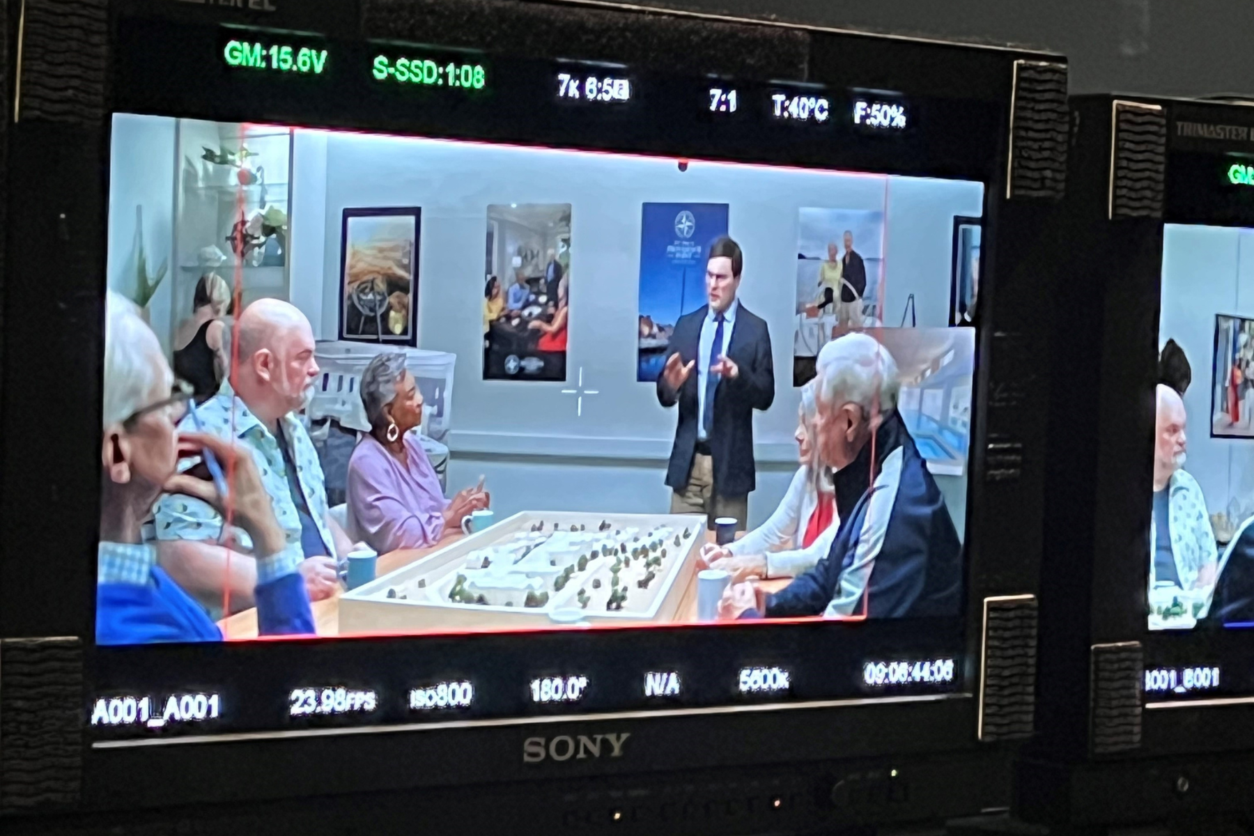 Viewing the commercial for The Village at Providence Point through the camera lense.